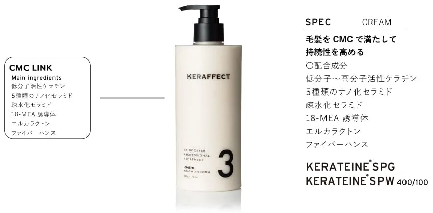 今回は、髪の主成分であるケラチン補給に特化した最新型のサロン専用トリートメント、今美容業界でも注目の**「ケラフェクト3ステップトリートメント」**をご紹介します。