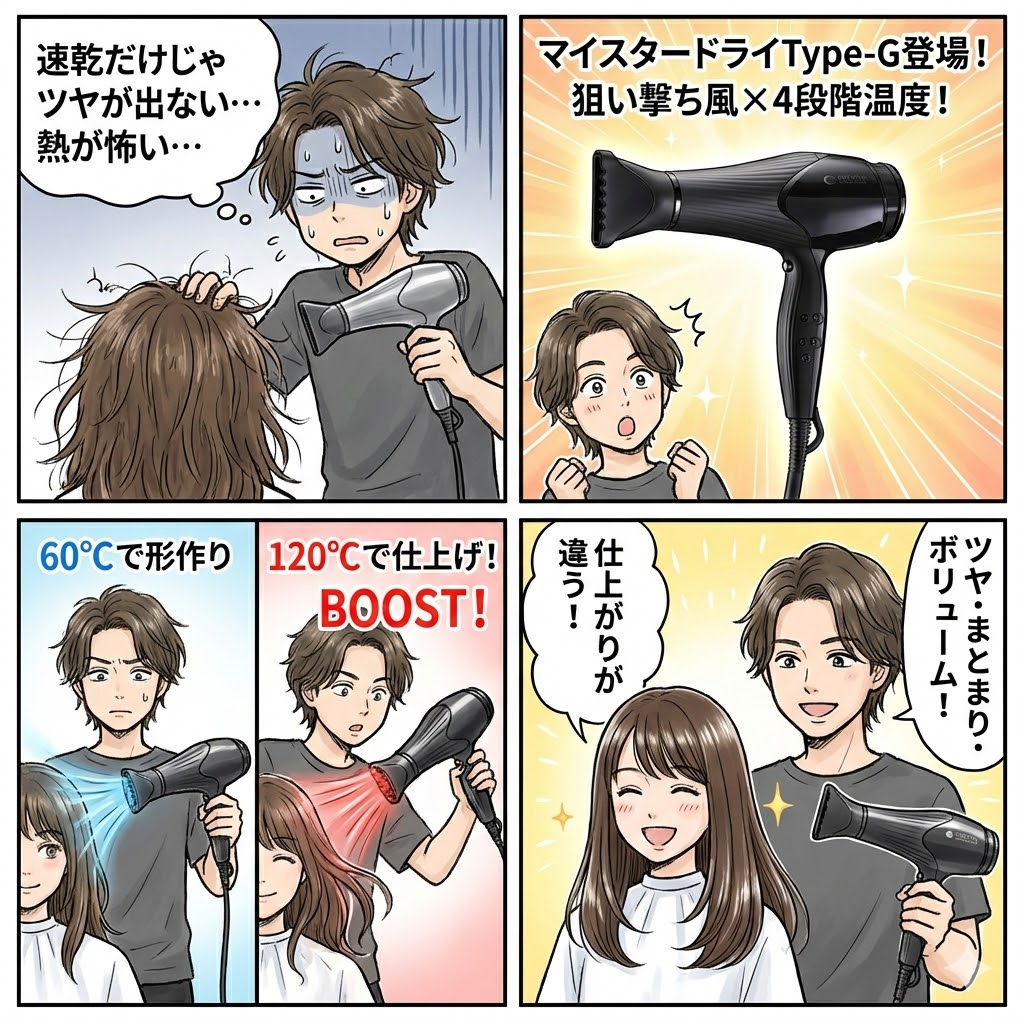 もし「ドライは速いのに、なぜか最後のツヤが決まらない」「熱が怖くて乾かし切れない」なら、Type-Gの価値は一度触ると早いです。