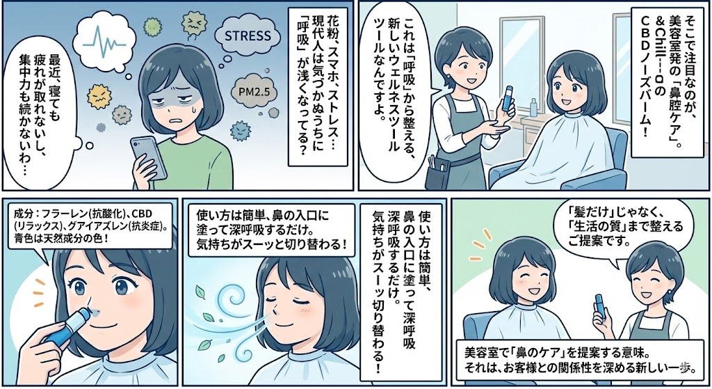 【美容室店販】花粉・鼻づまり対策に「CBDノーズバーム」|&Chillingの使い方・成分・口コミ・価格まとめ