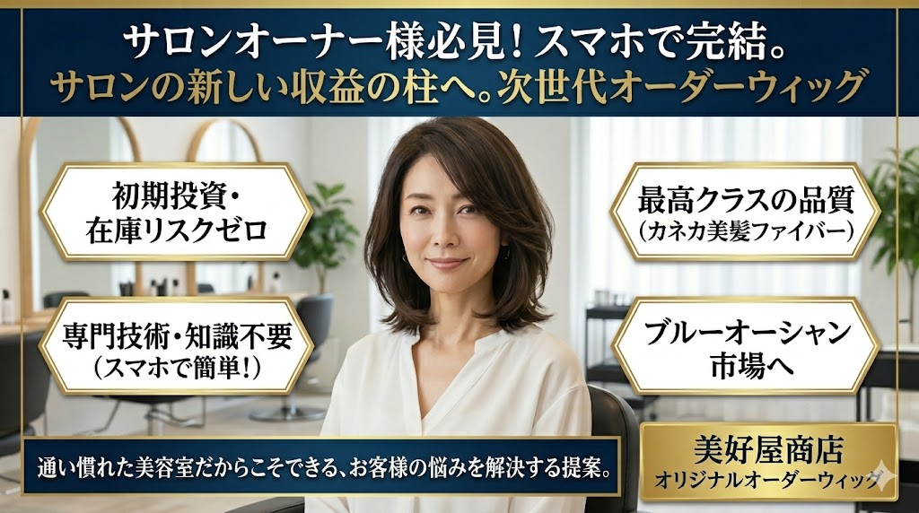 今回は、専門技術も在庫リスクも一切不要で導入できる、美好屋商店の『完全オリジナル・オーダーウィッグ』をご紹介します。